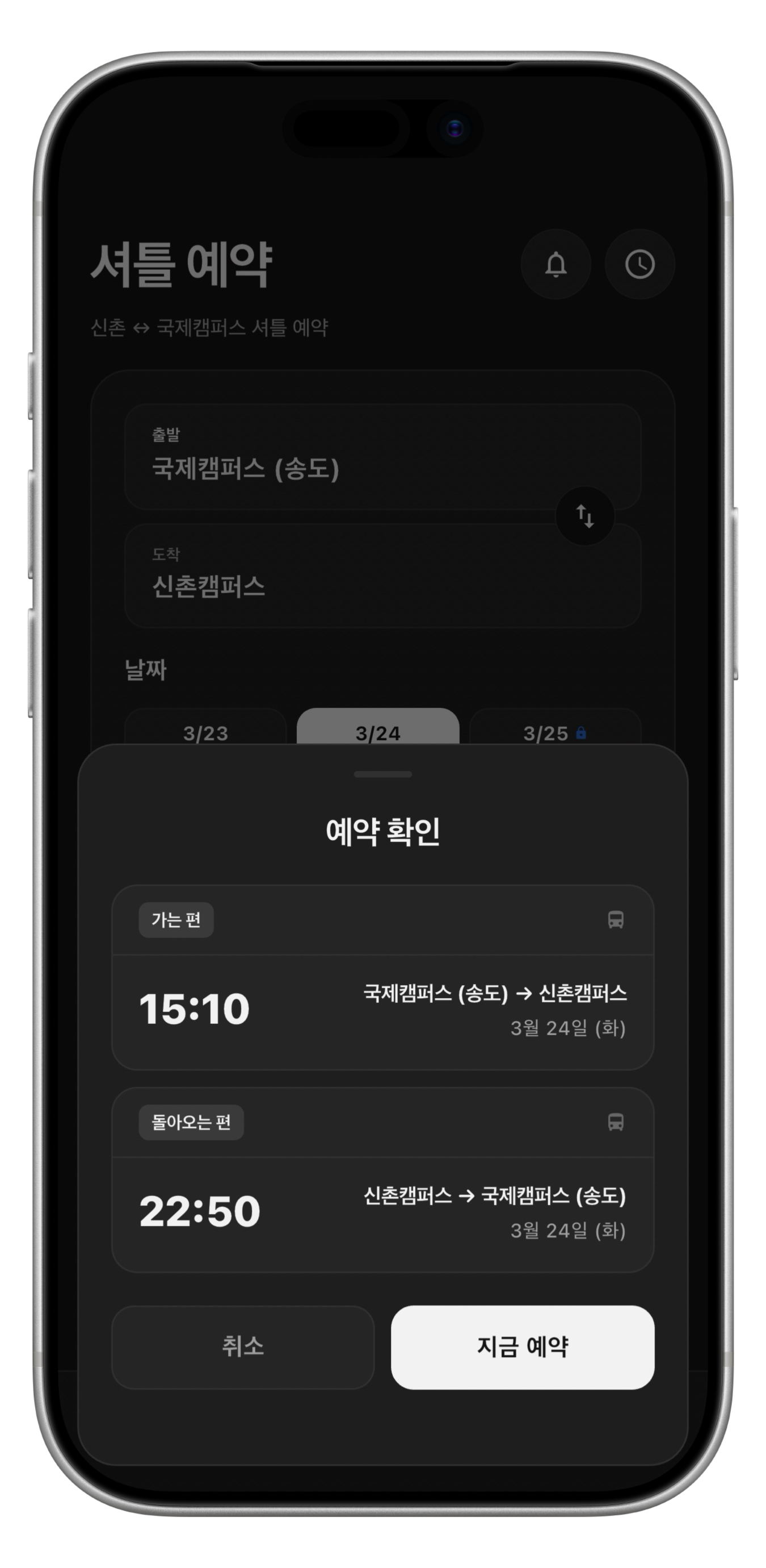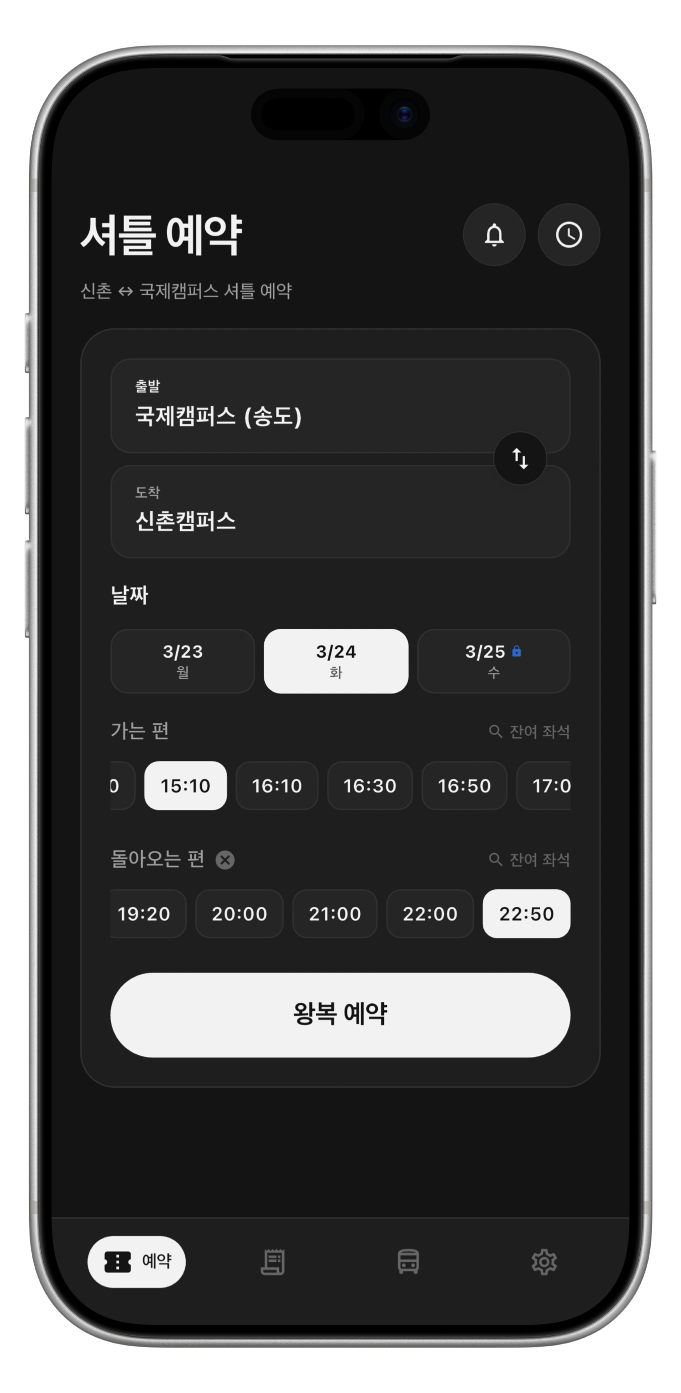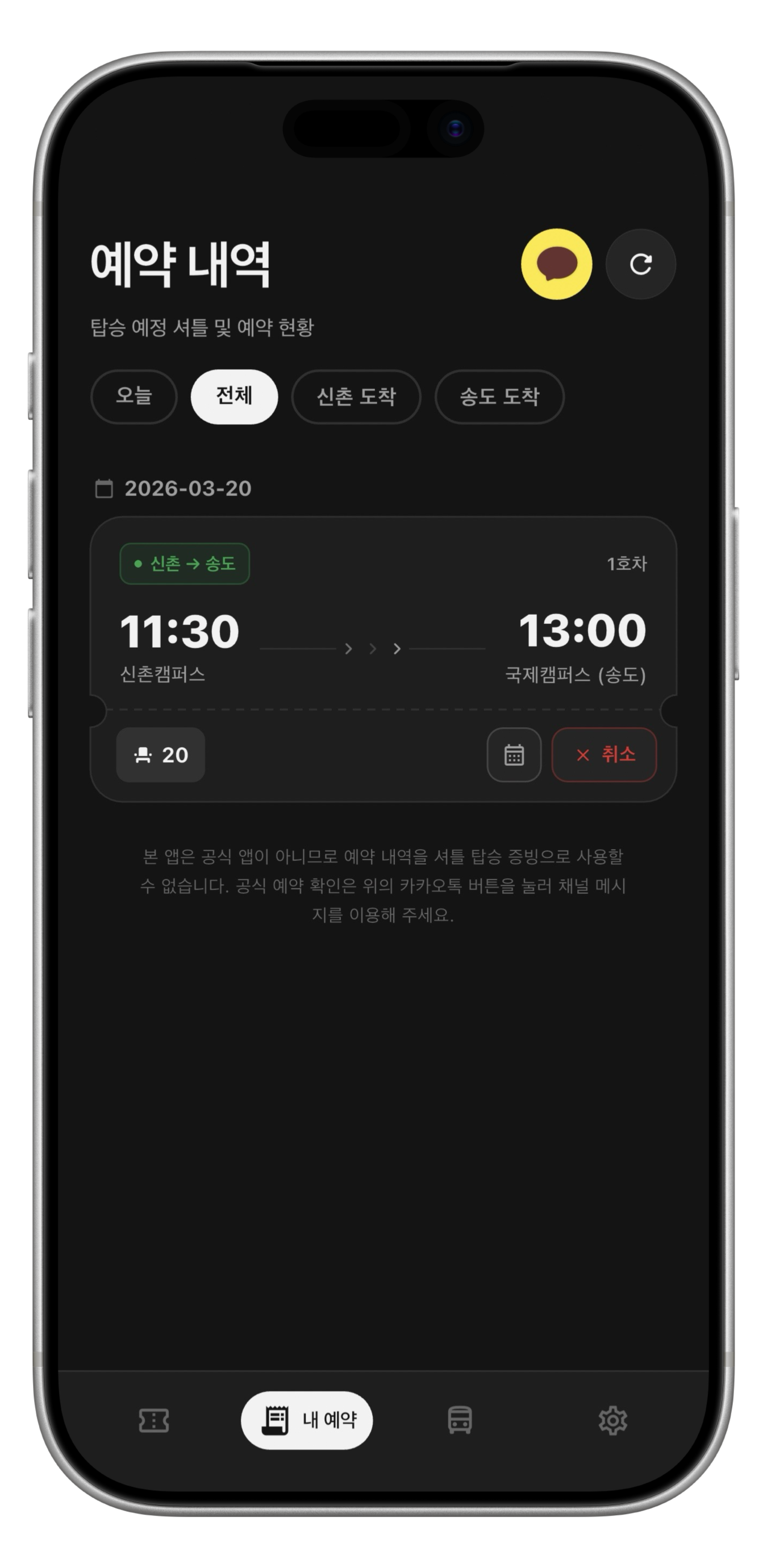 더이상 연세 포털에서 번거롭게 셔틀 예약하지 마세요!